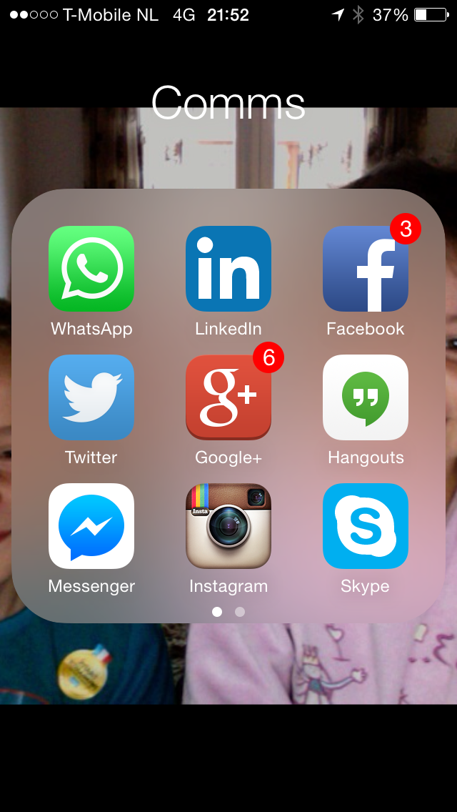 Ik heb zelf alle messaging Applicaties in 1 folder staan. 1 Inkomend berichtje op Skype, WhatsApp of Twitter en mijn folder krijgt een rood cirkeltje te zien. Dat werkt, en zorgt ervoor dat je alles onder controle houdt.