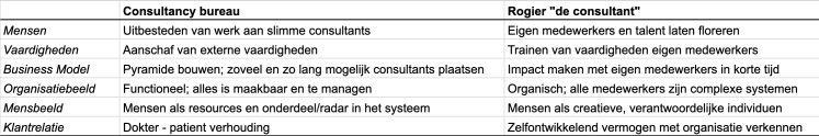 Rogier de consultant zal bij ons thuis niet snel als grapje verdwijnen. Maar het idee dat Rogier het anders doet dan de meeste consultancybureaus stelt me gerust. Het allerleukste voordeel van deze visie op werk is dat het me in iedere opdracht weer lukt iets nieuws te leren over systemen, technologie, mensen en mijzelf.